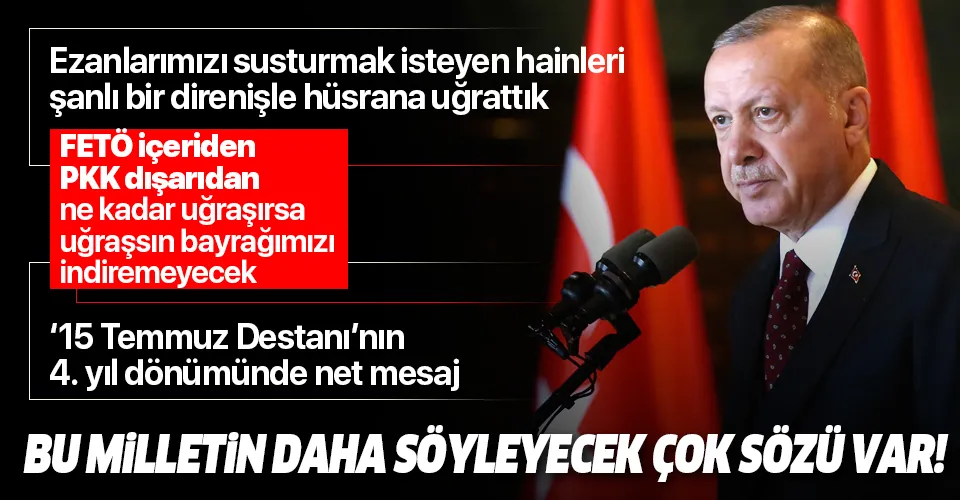 Başkan Recep Tayyip Erdoğan, resmi Twitter hesabından 15 Temmuz'un 4. yıldönümü vesilesiyle paylaşımda bulundu.