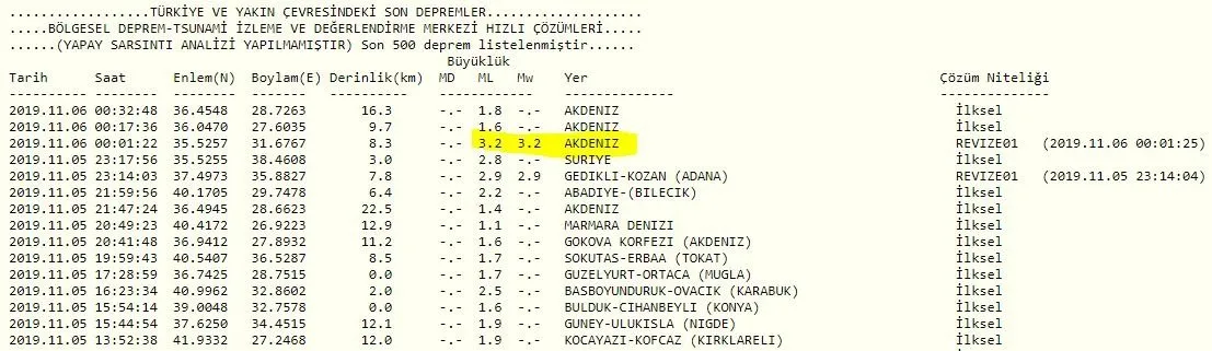 KANDİLLİ RASATHANESİ VERİLERİNE GÖRE ANTALYA DEPREMİ