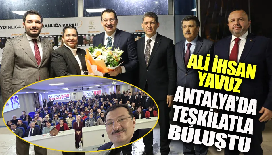 AK Parti Genel Başkan Yardımcısı ve Seçim İşleri Başkanı Ali İhsan Yavuz, AK Parti Antalya Genişletilmiş İl Danışma Meclisi Toplantısı kapsamında Antalya’da teşkilat mensuplarıyla bir araya geldi. Yoğun katılımla gerçekleşen toplantı, teşkilatlara adeta moral ve motivasyon aşılayan bir buluşmaya sahne oldu.