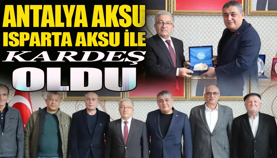 Isparta’nın Aksu ilçesi ile Antalya’nın Aksu ilçesi, isim kardeşliğini anlamlı bir ziyaretle pekiştirdi. Isparta Aksu Belediye Başkanı Veli Kahraman ve beraberindeki meclis üyeleri, Antalya Aksu Belediye Başkanı İsa Yıldırım’ı makamında ziyaret ederek iki ilçe arasında iş birliği ve dayanışma mesajı verdi.