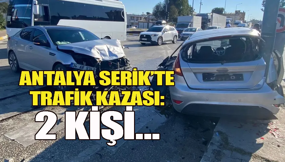 Antalya’nın Serik ilçesinde yaşanan kazada, Metin B. yönetimindeki 34 AR 9341 plakalı otomobil ile Dursun U. idaresindeki 06 BMZ 626 plakalı otomobil henüz belirlenemeyen bir nedenle çarpıştı. Çarpışmanın etkisiyle her iki aracın sürücüsü de yaralandı.