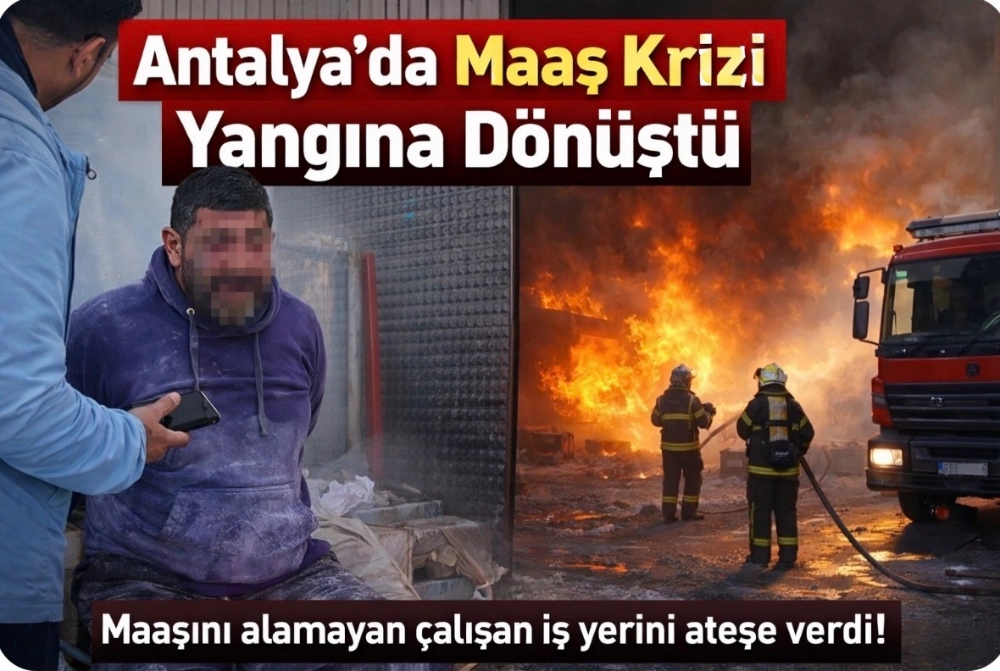 Antalya’da Maaş Krizi Yangına Dönüştü Maaşını alamadığını öne süren çalışan, iş yerini ateşe verdi; yangın kısa sürede kontrol altına alındı, şüpheli gözaltına alındı.