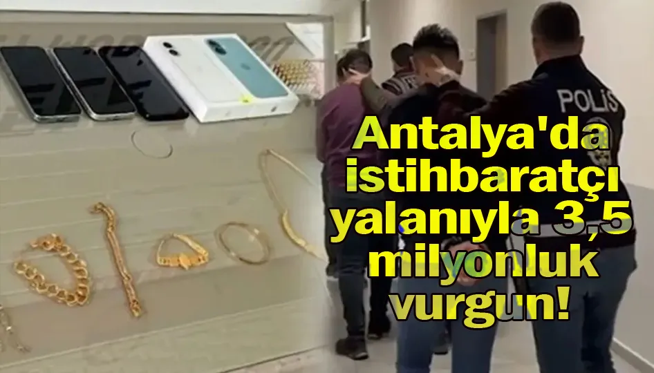 Antalya’da kendilerini Milli İstihbarat Teşkilatı (MİT) görevlisi olarak tanıtan dolandırıcılara polis darbesi vuruldu. Bir vatandaşı yaklaşık 3 milyon 500 bin lira nakit para ve ziynet eşyasıyla dolandıran 3 şüpheli, düzenlenen operasyonla yakalanarak tutuklandı.