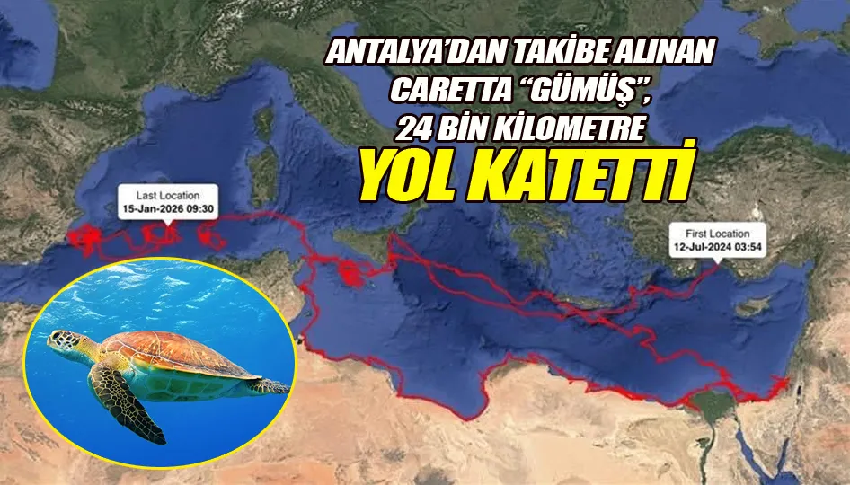 Antalya’da yaklaşık 1,5 yıl önce uydu takip cihazı takılarak izlenmeye başlanan “Gümüş” isimli caretta caretta, geçen sürede yaklaşık 24 bin kilometre yol katetti.