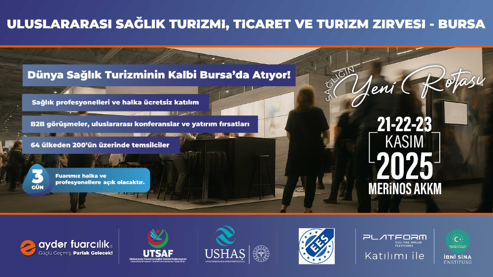 Bursa Valiliği’nin onayıyla, Ayder Grup organizasyonunda ve Uluslararası Ticaret ve Sağlık Turizmi Federasyonu (UTSAF) desteğiyle düzenlenecek Uluslararası Sağlık Turizmi, Ticaret ve Turizm Zirvesi, Merinos Atatürk Kongre ve Kültür Merkezi’nde gerçekleştirilecek.