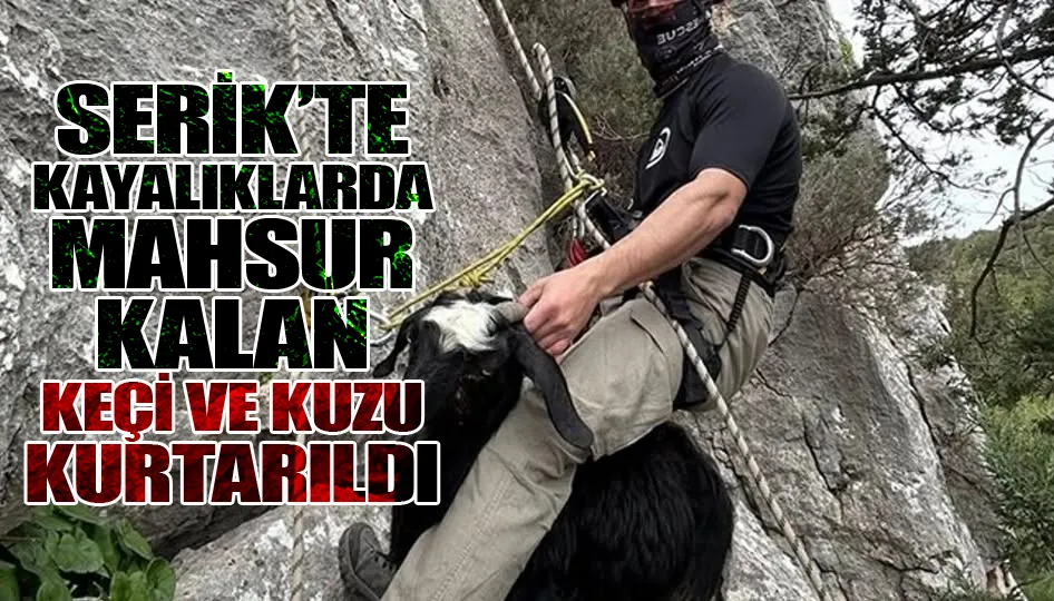 Olay, Serik’e bağlı Yumaklar Mahallesi’nde meydana geldi. Hayvanlarını otlatan sürü sahibi, bir süre sonra keçi ve kuzusunun sürüden ayrıldığını fark etti. Çevrede yaptığı aramada hayvanların yaklaşık 60 metre derinliğe sahip sarp kayalık bir alanda mahsur kaldığını gören sürü sahibi, durumu 112 Acil Çağrı Merkezi’ne bildirdi.