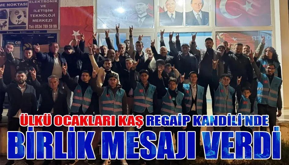 Antalya Kaş Ülkü Ocakları Kaş İlçe Başkanlığı tarafından Regaip Kandili dolayısıyla Kur’an-ı Kerim tilaveti ve yemek programı düzenlendi. Programa, Ülkü Ocakları Antalya İl Başkanlığı Batı İlçelerden Sorumlu Teşkilat Başkanı Kemal Balaban ile Ülkü Ocakları Kaş İlçe Başkanı Ayhan Yıldırım da katıldı.