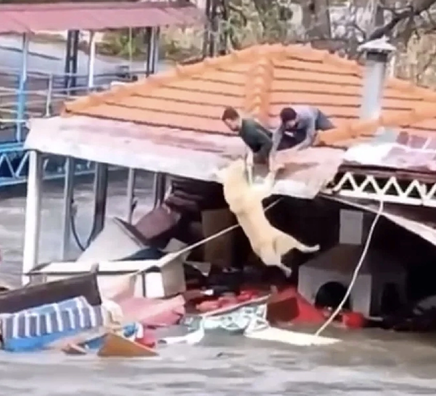 Aynı bölgede akıntıya kapılmak üzere olan bir köpek, işletme sahiplerinin yoğun çabasıyla son anda kurtarıldı.
