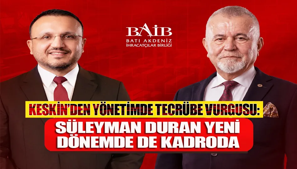 Batı Akdeniz İhracatçılar Birliği (BAİB) Başkan adayı Ramazan Keskin, yeni dönem yönetim kadrosuna ilişkin dikkat çeken bir paylaşım yaptı. Keskin, Burdur Bucak’ın önde gelen iş insanlarından Süleyman Duran’ın yeni dönemde de yönetim kurulunda yer alacağını duyurdu.