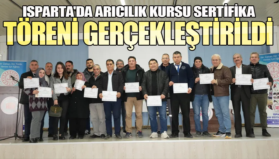 Isparta İl Tarım ve Orman Müdürlüğü ile Halk Eğitim Merkezi iş birliğinde düzenlenen Arıcılık Kursu, düzenlenen sertifika töreniyle sona erdi.