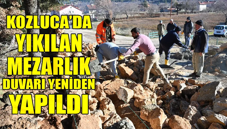Yapılan çalışmalarda Kozluca köyünde bir bölümü yıkılan mezarlık duvarı yeniden yapıldı.