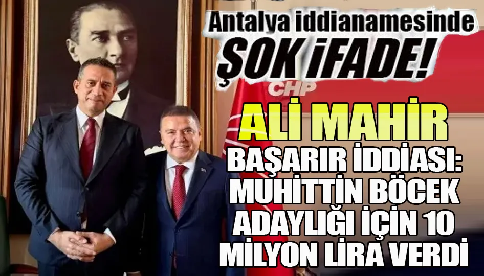 İddianamede, “suçtan kaynaklanan malvarlığı değerlerini aklama” suçlamasıyla şüpheli konumunda bulunan iş insanı Halil Tolga Ayvazoğlu’nun 10 Aralık 2025 tarihli ek ifadesine de yer verildi. Ayvazoğlu, ifadesinde Muhittin Böcek’in, belediye başkan adaylığı sürecinde destek aldığı gerekçesiyle CHP Grup Başkanvekili Ali Mahir Başarır’a bir daire hediye etmek istediğini kendisine söylediğini öne sürdü.