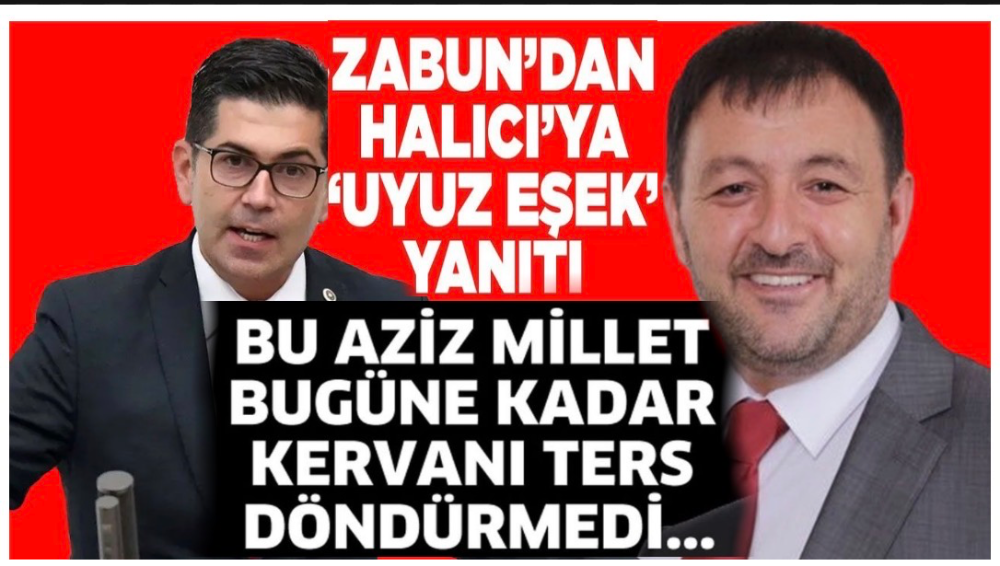 Basın toplantısında kullandığı “Kervan ters dönerse uyuz eşek başa geçer” ifadesiyle gündem olan Halıcı’ya tepki gösteren Zabun, açıklamasında sert ifadeler kullandı. Zabun, Halıcı’nın sözlerine karşılık olarak, “Merak etme Sayın Halıcı, bu aziz millet bugüne kadar kervanı ters döndürmedi, bugünden sonra da döndürmeyecek” dedi.